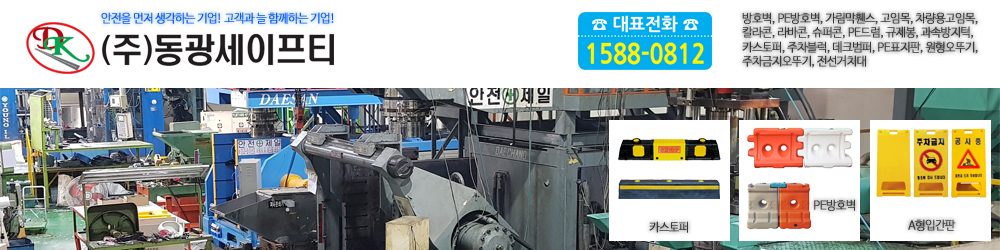 방호벽/PE방호벽/가림막휀스/고임목/차량용고임목/칼라콘/라바콘/슈퍼콘/PE드럼/규제봉/과속방지턱/카스토퍼