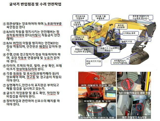 굴삭기 반입점검 및 수리 ...